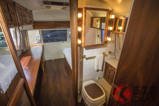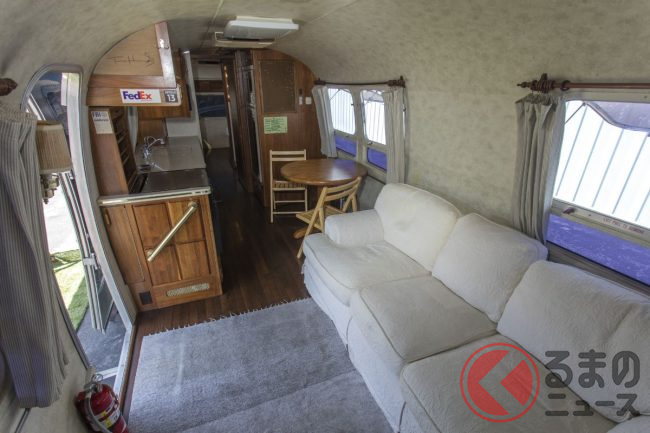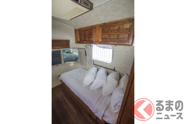 カーペット敷きの後部座席は、純正仕様の中央向きの折りたたみシートが用意され、さらにはルーフラックなども装備され、実用性も高められています。