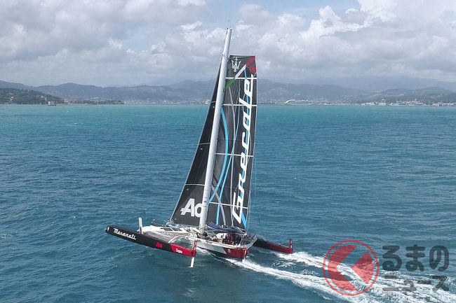 マルチ70号に新しいメインセイルが掲げられ、グレカーレの名前が現れると、イタリア人ヨットレーサーのジョバンニ・ソルディーニ氏と彼のクルーは、まさしく新時代のマセラティが発表する新型車の旗手となった。トリマラン(三胴船)のマルチ70を勝利に導くように、グレカーレの名を掲げたメインセイルが風を受け、まるでグレカーレのローンチを促しているかのようだ。ちなみに、「MC20」のローンチ前には、マルチ70号のメインセイルにはMC20の車名が掲げられていた。