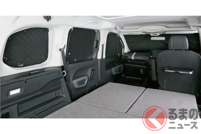ホワイトハウスでは正規ディーラーとして両モデルを取り扱うなかで、ユーザーから直接届く声や、さまざまなアイデアをもとに、グループ内のキャンピングカーを製造・開発している事業部のノウハウを生かし、車中泊を快適にする「スライディングベッドキット」や、子ども向けの「チャイルドベッド」、さらにワンタッチで取り付けられる「プライバシーシェード」や、虫の侵入を防ぐ「スマートネット」などをラインナップするに至ったという。