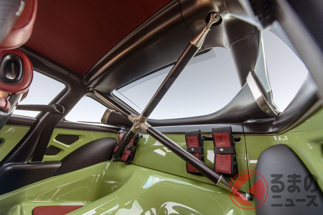 そのスペックは、高性能というにふさわしいものだ。ボディは空力的に最適化されたカーボンファイバー製となっていて、エンジンは自然吸気の4リッターフラット6を搭載。最高出力は500ps/9000rpmだ。