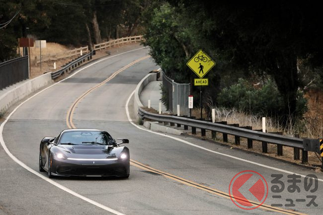 ピニンファリーナがバッティスタを米国カリフォルニアへと輸送し、まず持ち込んだのは、風光明媚な海岸線に沿ったワインディングロードだった。しかし、1900psのバッティスタを、このロケーションで体験するのは難しく、実際このイベントに招かれたゲストもそれは望まないだろう。