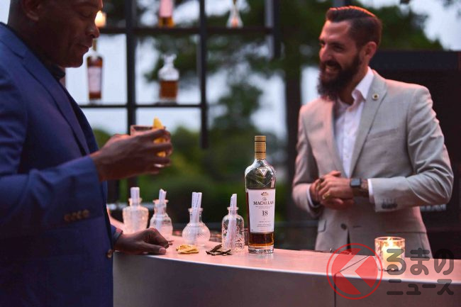 マッカランとベントレーのパートナーシップとして、地域のブランドアンバサダーであるケイロン・エリオット氏によるテイスティングがおこなわれ、ふたつのパートナーが共に歩む道のりの説明を実施。イベント期間中は、ベントレーのために最高級のウイスキーが提供された。(ただし、カスタマーが運転している時を除く)。