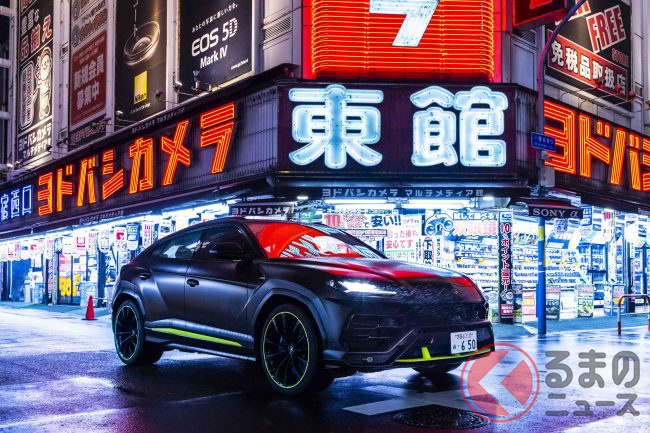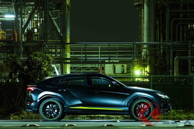 ランボルギーニが東京の夜景を舞台としたフォトシリーズを公開。被写体は「ウルス Graphite Capsule」と「ウラカンEVO Fluo Capsule」の2台です。
