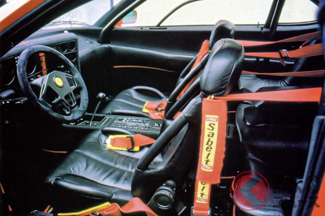 もうひとつ興味深いのは、製作年次が「モンディアル3.2」時代に相当する1987年から1988年であるにもかかわらず、翌1989年にデビューする「モンディアルt」の縦置きミドシップ・レイアウトと、3.4リッターのエンジンが先んじて導入されていることである。当時撮られた写真を見ると、たしかにフェラーリ「348tb/ts」にも共通するV8エンジンが縦置きされていることが確認できる。