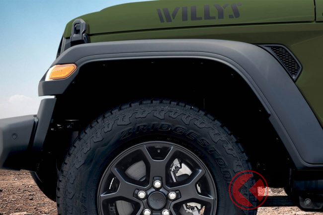 エクステリアにはブラック仕上げの専用フロントグリルやグロスブラックに塗装された17インチアルミホイール、「WILLYS」ボンネットデカールや、4WHEEL DRIVEリアゲートデカールが装備されるほか、ジープバッジとTrailRatedバッジは、マットブラック仕上げが施されている。