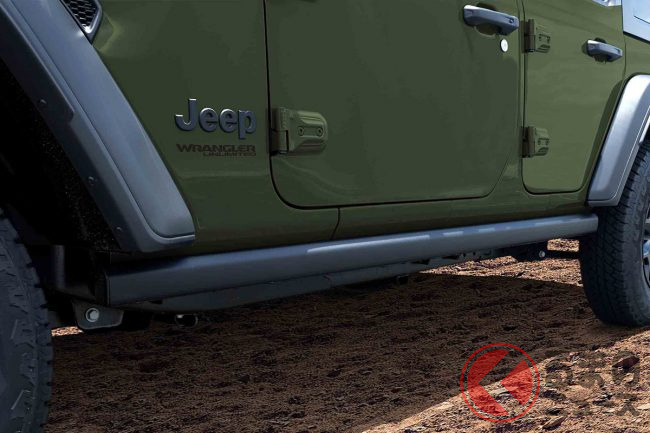 機能面については、悪路で車体下部を保護するロックレールや、滑りやすい路面でタイヤの空転を抑えることで推進力を高めるアンチスピンリアディファレンシャル、ラングラーきってのハードコアモデルである「ルビコン」と共通のDana社製M220リアアクスルが搭載されるなど、オフロード性能が強化されている。