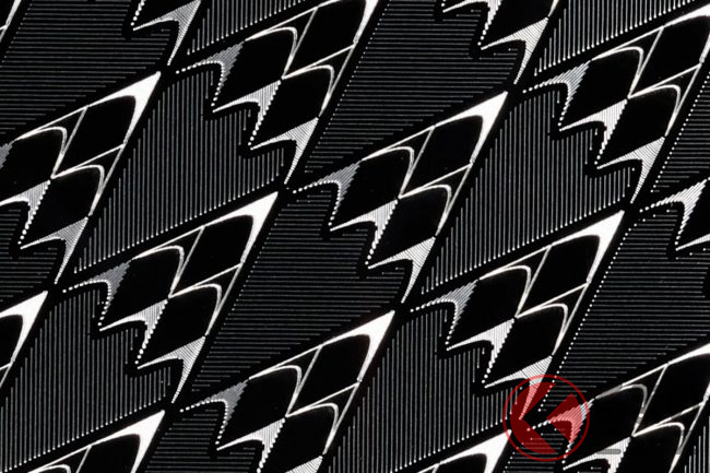 レクサスの象徴的なモチーフであるアローヘッドのモノグラムによるスポーティさと、7万本を超える線から構成される柄が美しく調和しています。