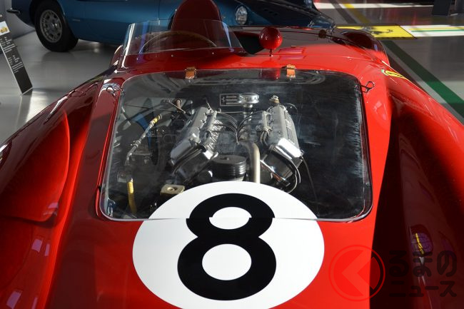 筆者はそれらの見方に対して、おそれながらもハッキリ「No!」といわせていただきたい。市販ストラダーレの分野にて1970年代後半以降、V8エンジン搭載車が多勢を占める以前から、フェラーリの本分であるレーシングカーの分野では、V12ではないモデルが数多く存在したのだ。