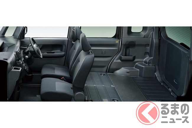 また、床面の高さでは不利になるものの、フルフラットに格納できる助手席と後席を設定したのも秀逸なレイアウトといえます。