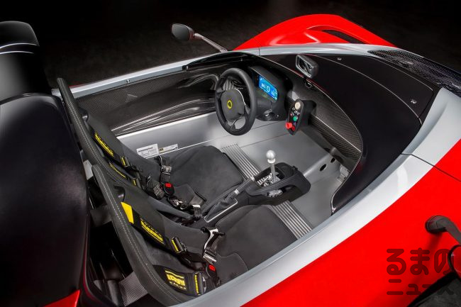 また、キャビン上部を取り払ったことで極端に低い全高による低重心化と、4輪ダブルウィッシュボーンサスペンションにより、エンジンパワーよりもコーナリングスピードを重視。まさにレーシングカーのコンセプトそのものです。
