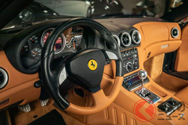 世界限定559台のみが生産されたスーパーアメリカのなかでも、正規の北米スペック車両は170台ほど。さらにマニュアル車の比率は、ベース車である575Mマラネッロよりもさらに小さかったようで、ユーズドカー市場に6速MT仕様のスーパーアメリカが出回る事例は皆無に近いともいわれているようだ。