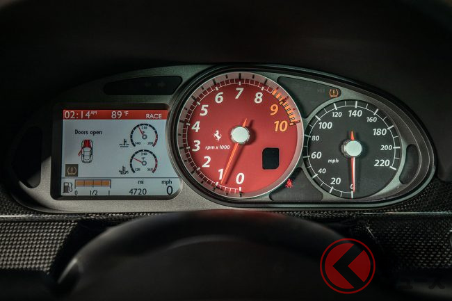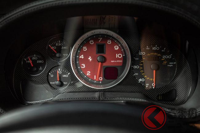 今回の出品車両の走行距離は8800マイル(約1万4000km)とローマイレージで、コンディションも新車同然。オプションや付属品も完備し、「フェラーリ・クラシケ」も取得済みという申し分のない条件も相まって、62万5000-70万ドルという驚きのエスティメートが設定されていた。