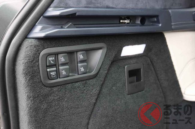 テールゲートを開けるとそこにもスイッチがたくさん並んでいますが、このスイッチで3列目のシートを畳んだり、戻したりすることができます。3列目に乗り込むときには2列目シートのスイッチによって、ワンタッチ操作だけで自動的にシートが前にスライドし、バックレストは前に倒れていって、乗り込みしやすくなります。