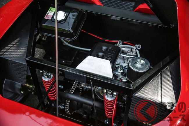また油圧式ショックアブソーバーやコイルスプリング、リアのディファレンシャル、油圧ディスクブレーキ、そしてウィッシュボーン式独立サスペンションなど、本物のF40さながらのメカニズムもおごられていた。