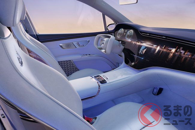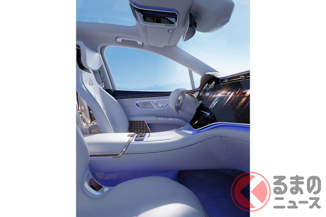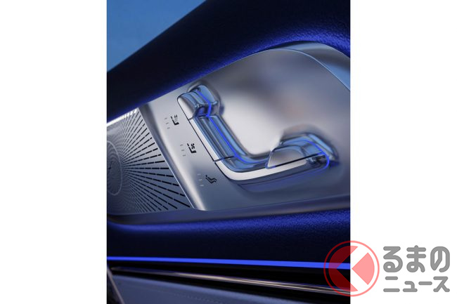 アウタードアハンドルは、ドライバーがクルマに近づくとせり出し、さらに近づくと自動で運転席のドアが開く仕組みとなっていて、対話型インフォテインメントシステム「MBUX」を使うことで後席ドアを自動で開けることも可能です。