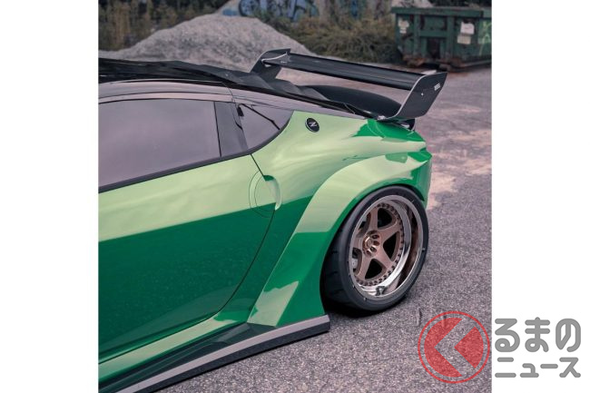 また、純正でもワイド感を基調としていますが、さらに左右に張り出したフェンダーが360度どの角度からみても一度見たら忘れられないほどのインパクトを放っています。