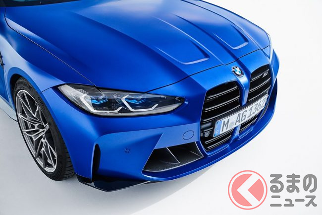 フロントデザインはM4クーペ同様、縦型の大型キドニーグリルを採用し、水平方向にはダブルバーを採用。エンジン冷却性能を高めるために大型のエアインテークを採用することで、他のモデルとの差別化を図っています。
