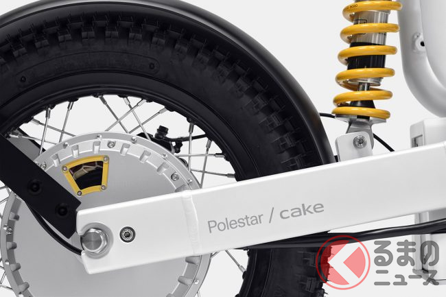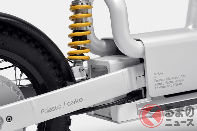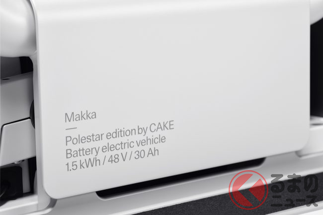 「Makka – Polestar edition by CAKE」とネーミングされたこのモデルは、モーターを原動機とする電動バイクとなっている。この電動バイクのポイントは、ポールスター社が販売している電動車「ポールスター2」のリアに専用のトゥバーを装着することで積載でき、走行中に充電できるというクルマと電動バイクの融和にある。