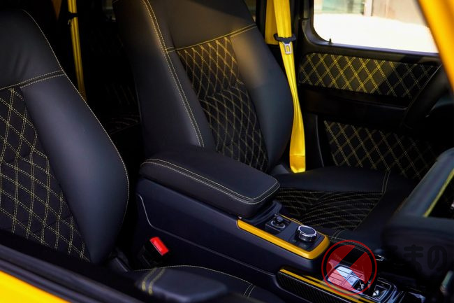 もっとも大きなハイライトは、ロールス・ロイスの「スターライト・ヘッドライニング」を思い起こさせる、「G-Boss」のレタリングが浮かび上がるヘッドライニングだ。Gクラスのカスタマイズの手法が多様化するなかにあって、このヘッドライニングは、ひとつのトレンドセッターとなるかもしれない。