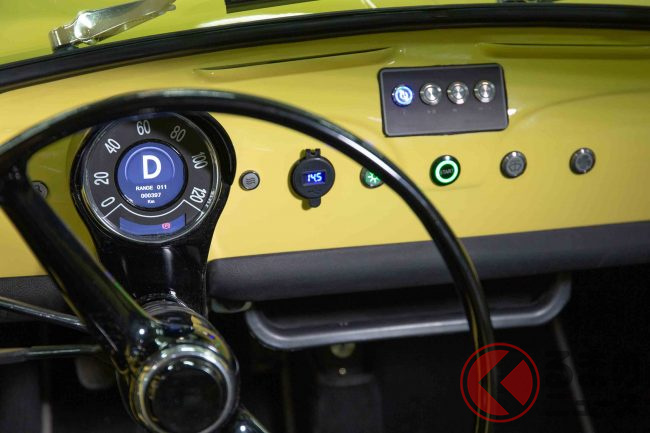 チンクエチェント博物館でプロデュースする電気自動車「フィアット500ev」の第1号車が完成しました。充電ソケットやメーターパネルなどがアップデートされました。