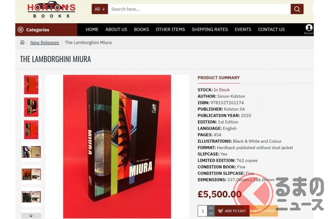 2020年、ランボルギーニ「ミウラ」の生産台数と同じ冊数限定で発売されたのが、『The Lamborghini Miura Book』という本。冊数限定を謳い、前割制度(450ポンドが400ポンド)を導入し、消費者の心をくすぐって見事に762冊を完売した。