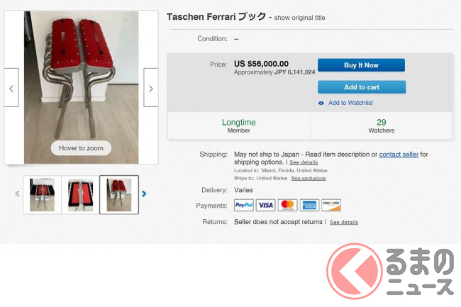 あれから3年、eBayで販売された専用ケースとスタンド付きの“高級版”は、希望販売価格5万6000ドル(616万円、1ドル110円で換算)が掲げられている。絶対的金額は高く感じるが、こちらは新品と比較して2倍弱という希望転売価格だ。