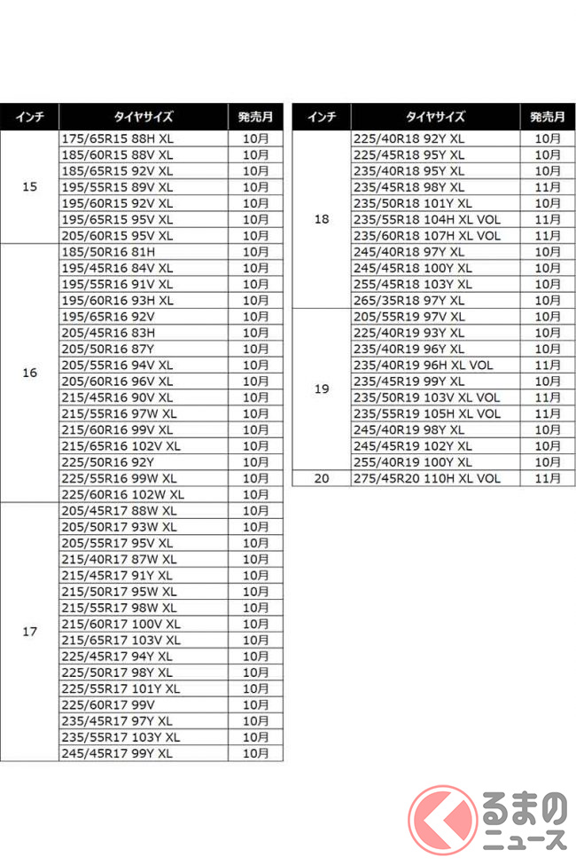そして今シーズン、新たに登場したのが「クロスクライメート2」です。サイズは15インチから20インチ、35シリーズから65シリーズまで全61サイズ、価格はオープンで、この10月8日より順次発売されます。
