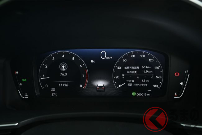 しかし、センターコンソール周りやパワーウィンドウ部の樹脂部が事務的と、調和の甘さも。また上級のEXはフル液晶メーターが採用されるも、表示などを含めて活かし切れていないのも残念な部分です。