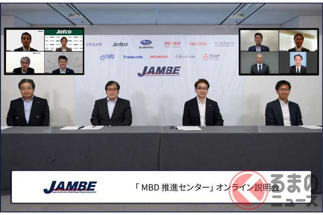 国内自動車メーカー5社(トヨタ、日産、ホンダ、スバル、マツダ)と、部品メーカー5社(アイシン、デンソー、パナソニック、三菱電機、ジヤトコ)は2021年9月24日、MBD推進センターの参画について、オンラインで共同記者会見をおこないました。