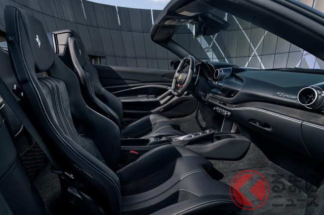 エンジンは、オリジナルのフェラーリ製3.9リッターV型8気筒ツインターボから、さらに82psのパワーと120Nmのエクストラを得て、最高出力は802psに達し、0−100km/h加速2.6秒、最高速は340km/hというから、オープントップモデルとしては世界最速のラインに並ぶモデルと考えてよいだろう。