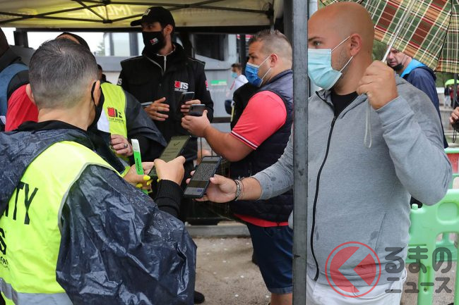 入場窓口ではひとりひとり、グリーンパス・PCR検査の提示をしなくてはならないので長蛇の列となった。それでも忍耐強く入場の列に並ぶ入場者。参加者同様、観客もヒストリックのモータースポーツ観戦を待ち望んでいたのだろう。