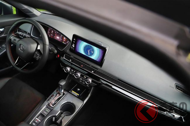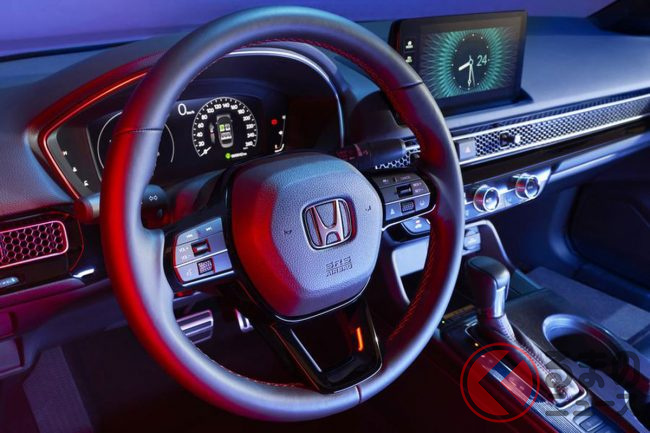 インテリアに関して、2021年9月30日時点で新型インテグラは公開されていないようですが、新型シビックに関してはグローバルで展開しているHonda CONNECTディスプレー(DAスマートスクリーン)やパンチングメタルのエアコンアウトレットを採用しています。
