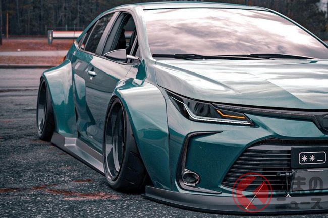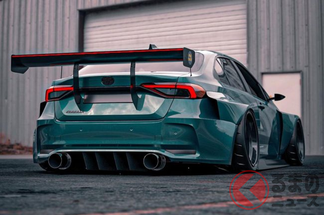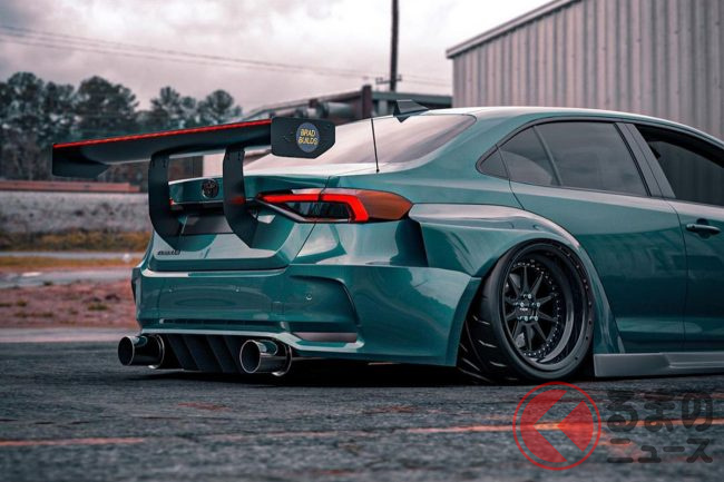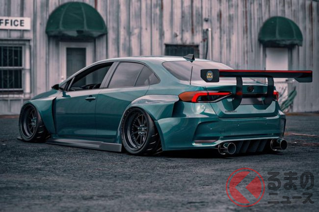 トヨタ爆速セダン「カローラ」登場! ド迫力ウイング&シャコタン装着! 過激カスタムイメージがスゴい!