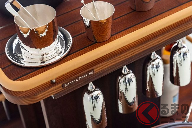 この記念モデルに合わせて、メルセデス・マイバッハの長年のパートナーたちも、厳密に限定された特別シリーズをデザインしています。たとえば、ライセンスパートナーであるマイバッハ・アイコンズ・オブ・ラグジュアリー社は、マイバッハ・ザ・ピーク・コレクションからダイヤモンドをあしらった万年筆を提供し、銀食器とヨットのメーカーであるRobbe & Berking社は、特別に作成した彫刻を施したシャンパングラスを提供しています。