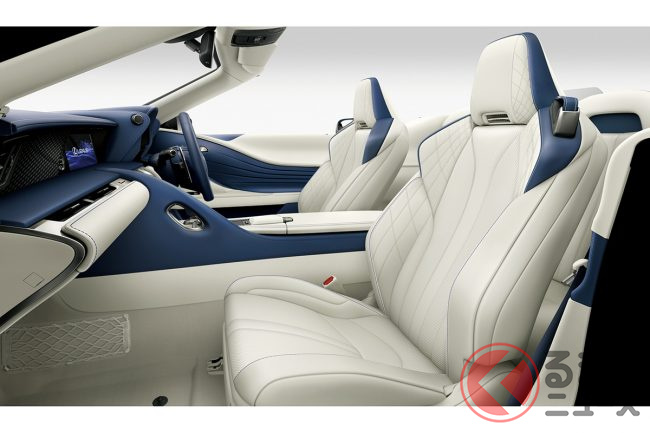 インテリアでは、コンバーチブルモデル(LC500 Convertible)に、「ブルー&ホワイト」と、その専用ルーフカラーとして「マリーンブルー」を新たに設定。