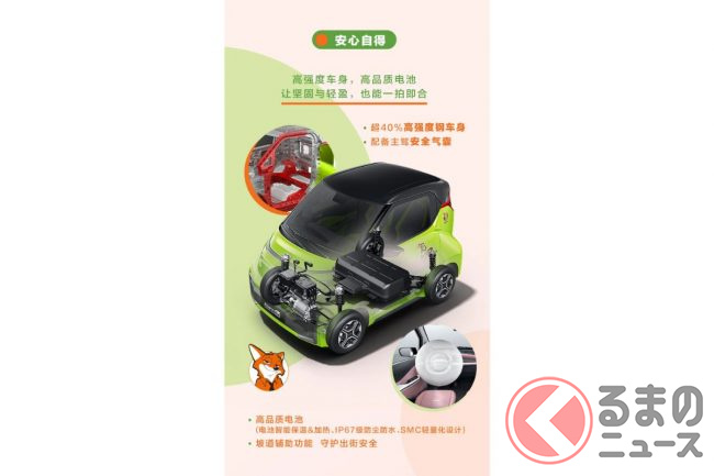 NanoEVは上汽通用五菱の「宝駿(BAOJUN)」という別のブランドが展開している「E200」という超小型2人乗りEVの姉妹車になります。