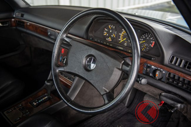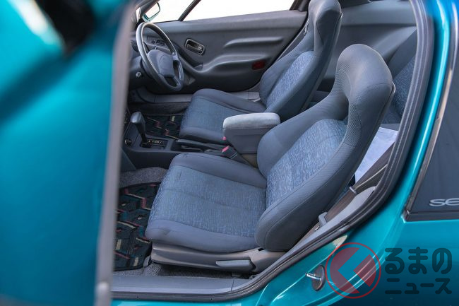 今回紹介する1993年式のセラに、その熱線反射ガラスが装備されているかどうかはわからない。写真を見て分かることは、この個体は右ハンドルであること、メーターの表示がkm/hかつ180km/hスケールであること、シフトロックボタンに「解除」と日本語が書かれていることから、日本国内向けの車体であることは間違いないと思われる。走行距離は4万260kmで、内外装とも美しさを保っている。