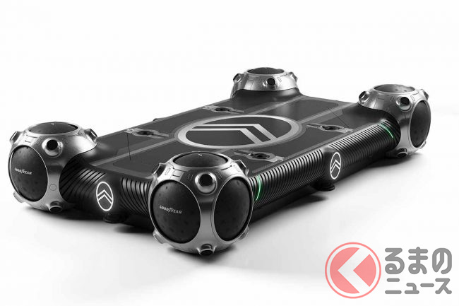 シトロエン・スケートはオープンソースで、専用のインターフェイスさえ遵守すれば誰でもサービスポッドを開発することが可能になるといいます。タイヤにはグッドイヤーが開発した「イーグル360」を採用、これは全方向性で、小型モーターが内蔵された球面タイヤで構成されています。これにより、車体を360度、自由に移動させることが可能になっています。