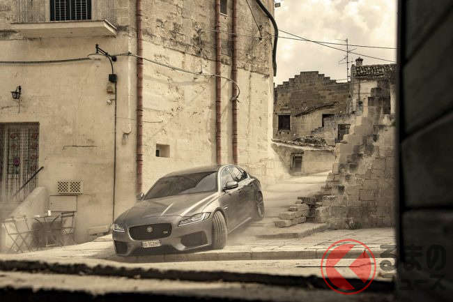 イタリア南部の都市、マテラで撮影されたシーンには、2台のXFが、ジェームズ・ボンドがドライブするアストンマーティン「DB5」を追って曲がりくねった狭い路地を縫うように走り、広場や石畳の階段を駆け抜けている。