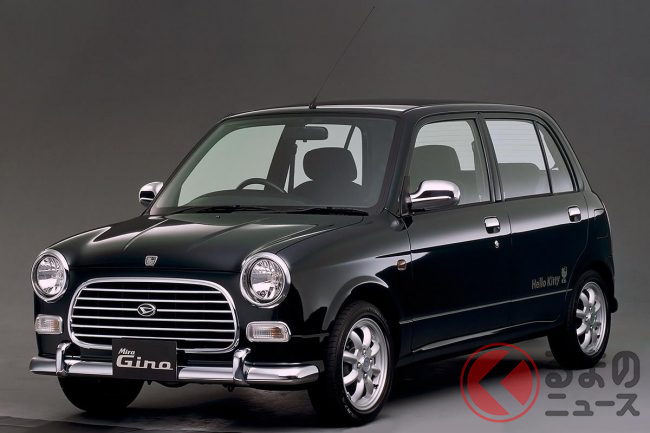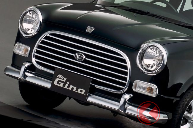 ミラ ジーノは4代目で展開された「ミラ クラシック」の実質的な後継車で、外観はBMC「ミニ」をオマージュしたようなフロントフェイスにメッキパーツを多用するなど、クラシカルにカスタマイズされたモデルでした。