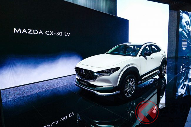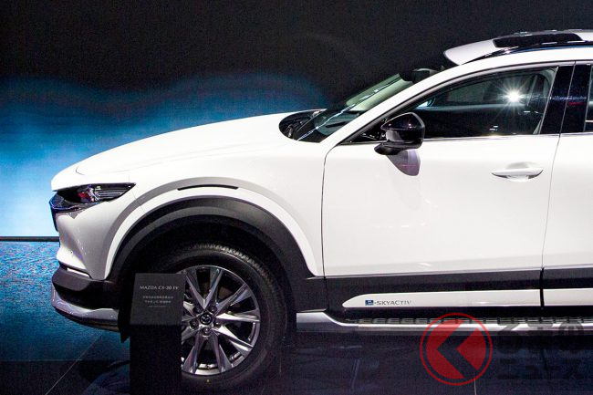 マツダ 新型「CX-30 EV」登場! マツダSUVがノッポに変身!? かさ上げされた中国独自仕様の正体とは