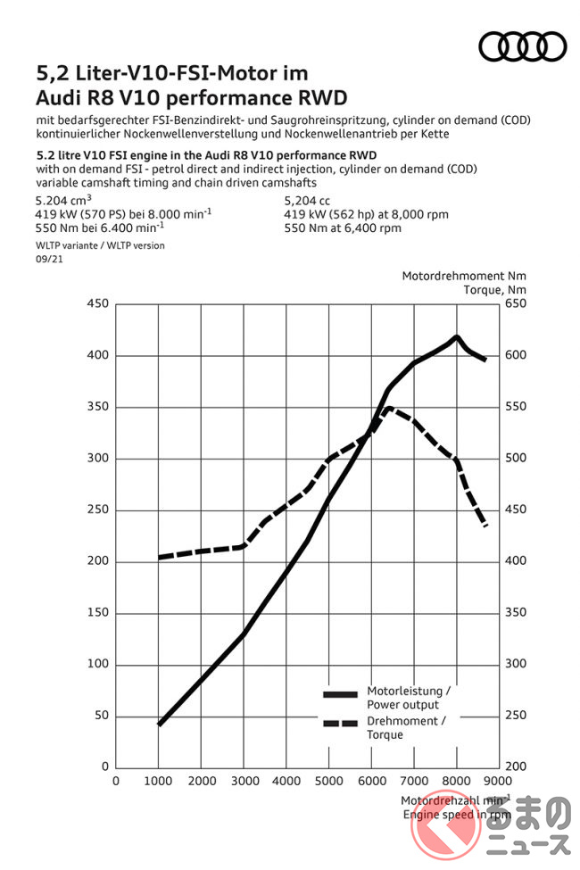 5.2リッターV10自然吸気は570馬力・550Nmを発生