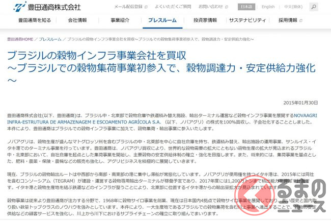 実はノバアグリ社、トヨタ自動車の子会社である豊田通商が2015年に買収して完全子会社化したもの。ブラジルトヨタは車両を売りたい、豊田通商はノバアグリ社をとおして穀物調達力・安定供給力を強化したい、という思惑が合致しているのだ。