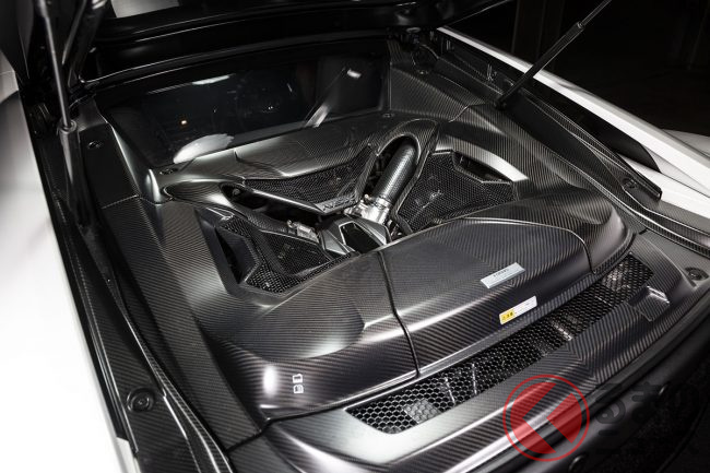 ミッドシップマウントされた縦置き3.5リッターV型6気筒DOHCツインターボエンジンはハイブリッドで、エンジン+モーターのシステム全体で581psを発生。