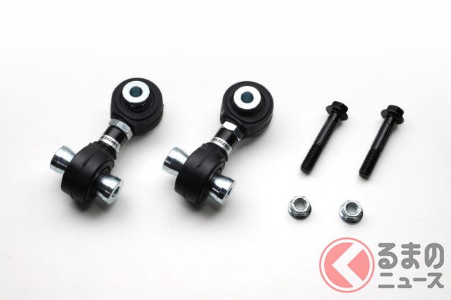 「STABILINK ADJUSTER」は、車高ダウン時のリアスタビライザーの取り付け状態を適正化するリアスタビリンク。調整式を採用し、純正比-25mm~-13mmの調整が可能です。ピロボールにより、スタビライザーによるロールコントロールのダイレクト感を向上しています。