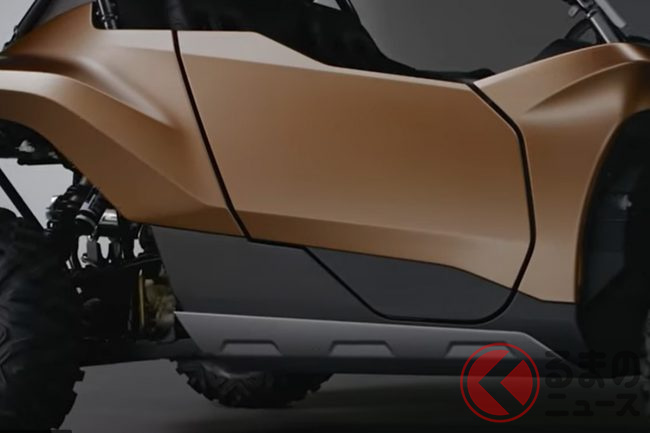 また、オフロード走行用のバギーらしいタイヤやサスペンションなどを採用した2人乗りモデルです。