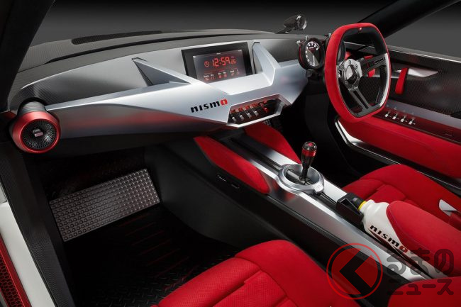 内装では液晶モニターとアナログメーターが共存するネオクラシックかつシンプルなデザインのインパネで、IDx NISMOでは外装と同じくカーボン製部品をふんだんに使ったレーシーな装いです。