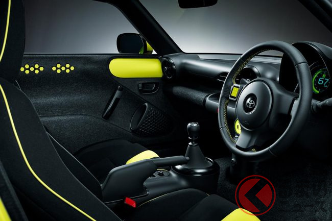 ボディサイズは全長3990mm×全幅1695mm×全高1320mm、ホイールベース2480mmと、86よりもひとまわりコンパクトに設定され、4シーターです。