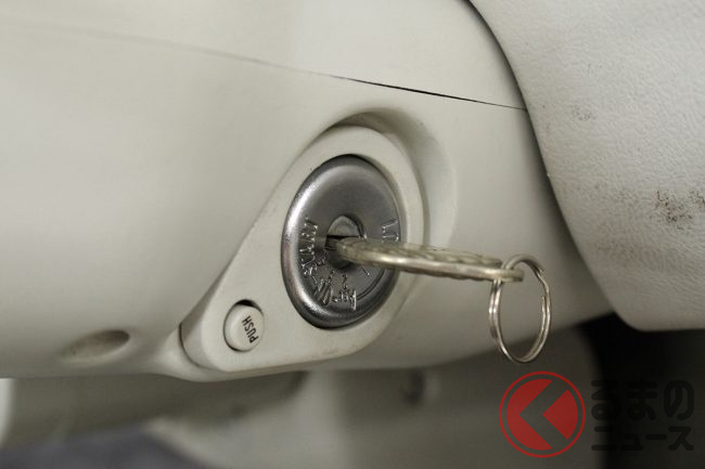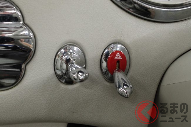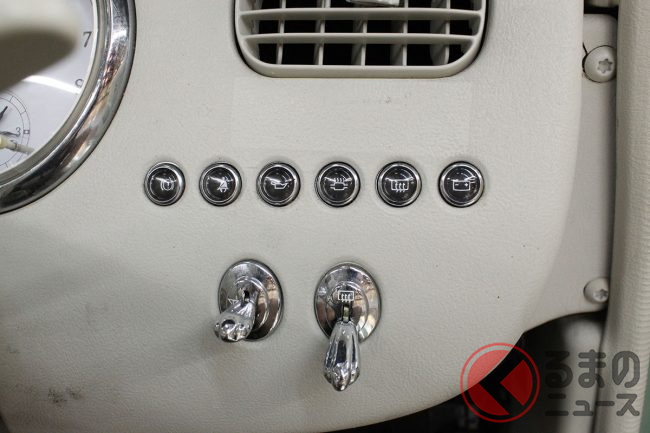 内装も美しさを保っている。ホワイトの本革シートは使っていると汚れてしまいやすいものだが、この個体はスレや汚れがない。傷がつきやすいキーシリンダーまわりや、メッキとなっていたトグルスイッチも美しい状態だ。メーター上の走行距離は7万6755kmとなっていることから考えると、インテリアにはリペアなどのなんらかの手が入っているのかもしれない。