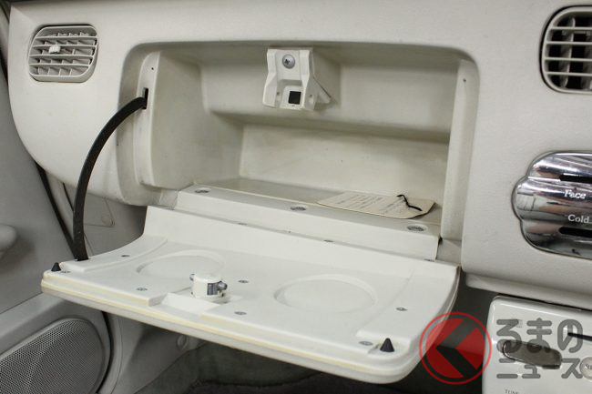 オーディオは、純正で装備されていたCDカセットプレーヤーがセットされている。灰皿は使った形跡がなく、傷つきやすかったホイールキャップもグッドコンディションだ。